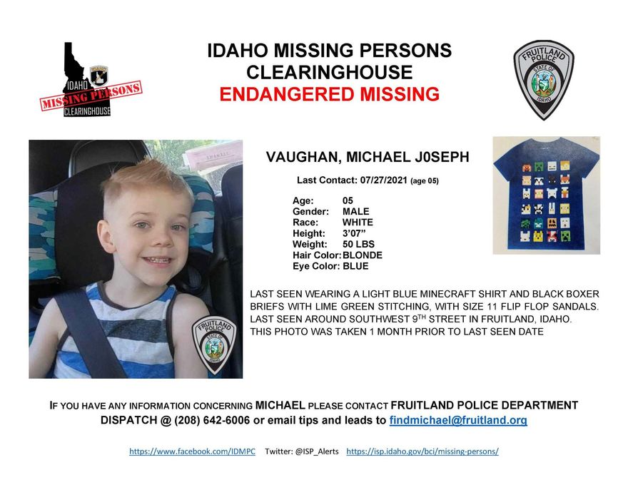 On July 2021 in Fruitland, Idaho, five-year-old Michael “Monkey” Vaughan disappeared from his neighborhood near Southwest 9th Street. His case quickly expanded beyond a local search and became a statewide effort across Idaho.